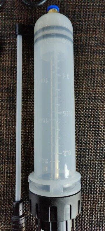 HIGH-QUALITY MATERIAL: The syringe oil pump is made of high-quality, strong and durable material, with built-in double rubber pads that fit the piston tightly to avoid leakage, and the thickened wall enhances high strength and provides a long service life.